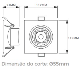 Dimensão: 112mmX112mmX21mm(Comprimento, largura e altura)